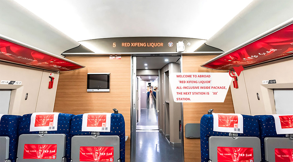 ALL-INCLUSIVE IS THE MOST INFLUENTIAL MEANS OF PROPAGATION IN HIGH-SPEED TRAIN MEDIA, ALL MEDIA HAVE WRAPPED PROPAGATION TO FORM FLOW EXPERIENCE, EFFECTIVELY CREATE BRAND EXCLUSIVE PROPAGATION SPACE AND BRAND ATMOSPHERE. ALL INSIDE AND OUTSIDE TRAIN MEDIA ESTABLISH THAT THEY ARE ABLE TO INCLUDE TRAIN BODY POSTER, HEADREST COVER STICKER, TABLE POSTER, SPECIAL POSTER, WALL POSTER, PACKS POSTER, TRAIN DOOR POSTER, COACH DOOR POSTER, VOICE ANNOUNCEMENTS AND OTHER MULTIPLE MEDIA FORMS.